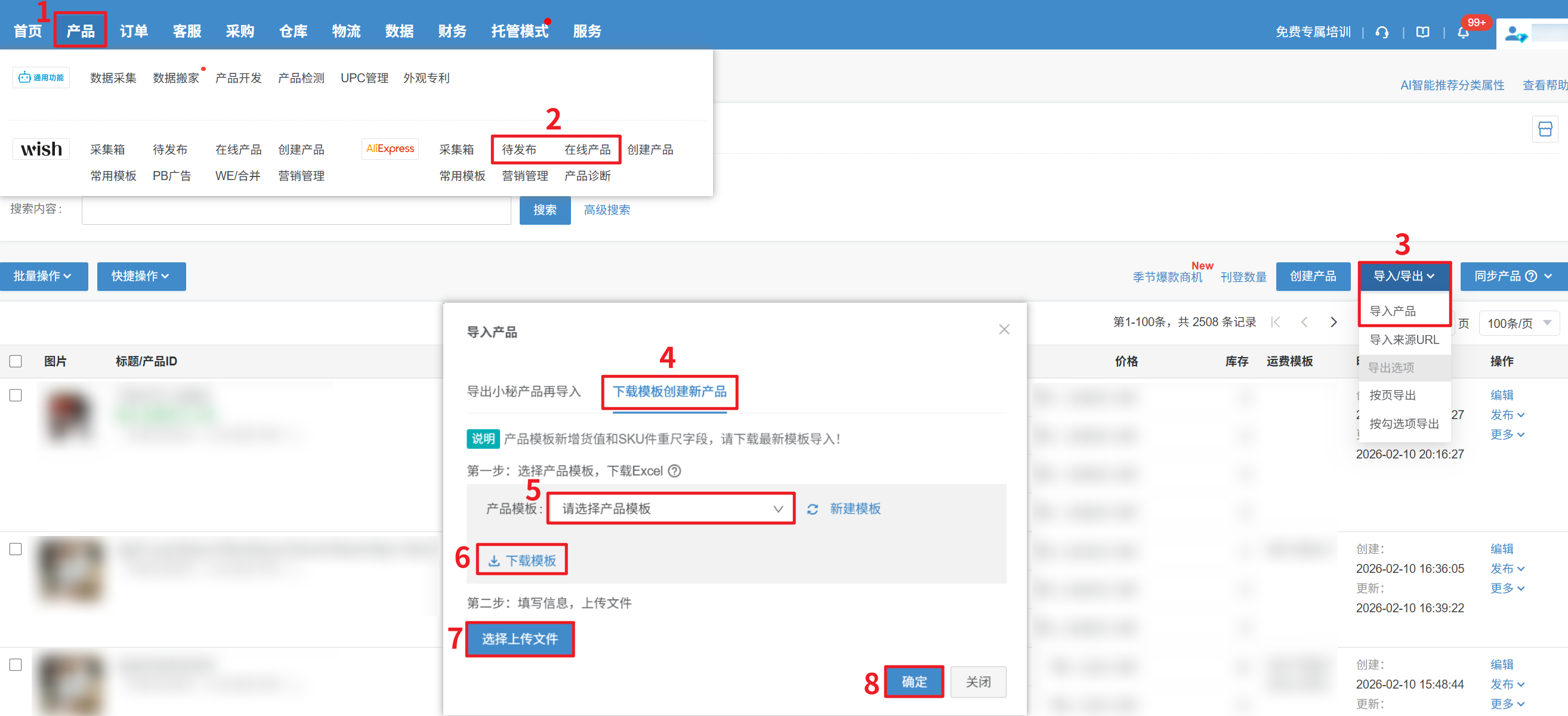 2、导出的是什么模板,就用什么模板导入创建产品
